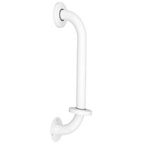 Rovné biele zábradlie, 50 cm dlhé, určené na toalety pre telesne postihnutých. Zábradlie je podopreté na dvoch bodoch a je vyrobené z uhlíkovej ocele. Držiak je určený na všeobecné použitie a možno ho namontovať vo zvislej alebo vodorovnej polohe. Vhodné do kúpeľní a bezbariérových toaliet. Sada obsahuje hmoždinky a skrutky na montáž.