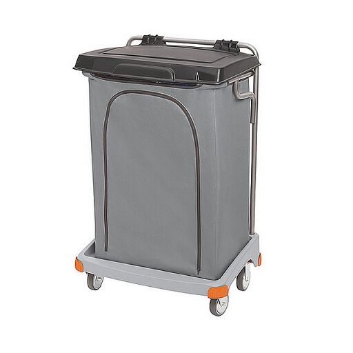 Vozík s krytom na zber a prepravu odpadu a špinavej bielizne v hoteloch, SPA a pod. Vozík vedľa 120 l plastové vrecko , má navyše vonkajšie ochranné vrecko. Plastová základňa a nerezové rámy sú odolné a esteticky vyrobené, čo zaručuje dlhú životnosť. Otočné kolesá vpredu a pevné kolesá vzadu zaisťujú pohodlnú jazdu v kočíku. Na ochranu povrchov stien, dverí a nábytku pred poškodením sú na okrajoch základne nainštalované ďalšie nárazníky.