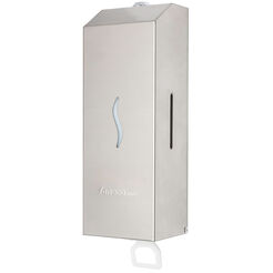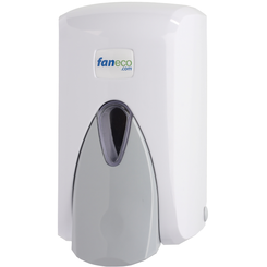 Klasický pollitrový dávkovač vyrobený z vystuženého plastu. Určené pre tekuté mydlo, vybavené širokým, ergonomickým tlačidlom pre pohodlné používanie. Môže byť použitý na verejných toaletách, v kuchyniach a iných verejných priestoroch.