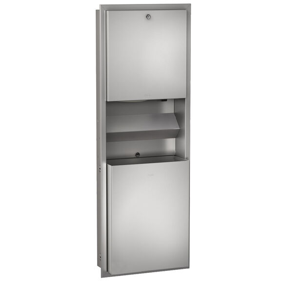 Nerezová oceľ, matne brúsený povrch, hrúbka materiálu 0,8 mm. Válcový zámok s univerzálnym kľúčom Franke. Kapacita ručníkového podávača 300 - 400 kusov v závislosti od výrobcu a spôsobu zloženia. Dispenser je prispôsobený na tekuté mydlo, emulziu a antiseptické mydlo, má 800-mililitrový nádobu na opakované plnenie a plastovú páku. Kapacita odpadového koša je približne 23 litrov. Súčasťou sú nerezové skrutky a rozporové kolíky.