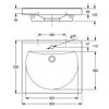 • Rozmery umývadlovej misy (š x v x h): 520 × 90 × 380 mm.
