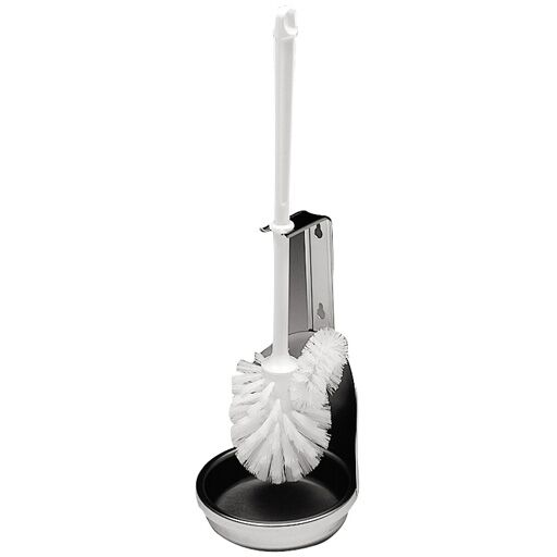 Toaletná kefa na povrchovú montáž. Nerezová oceľ, matne brúsený povrch. Biela nylonová kefa s čističom na okraj záchodovej misy. Integrovaná odkvapkávacia nádoba. Kefa zavesená na rukoväti. Súprava obsahuje nerezové skrutky a hmoždinky.