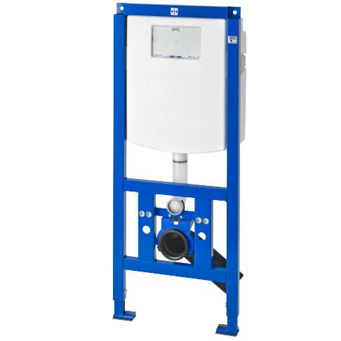Stelaż podtynkowy AQUAFIX do przeznaczonych do łazienk bez barier, wiszących misek WC wyposażony w zbiornik na wodę do zabudowy w ścianie. Samonośna, powlekana proszkowo rama stalowa. Produkt sprawdzony przez niemiecki TÜV. Do zabudowy pojedynczej – suchej. Wyposażony w izolację przeciwroszeniową zbiornik spłuczki podtynkowej z funkcją wyboru jednej z dwóch opcji pojemności (7,5-4,5 l lub 4-2 l) lub z funkcją spłukiwania start/stop. Przeniesienie siły wyzwalającej funkcję spłukiwania przez wysoce elastyczne spirale przyciskowe. Zawór napełniający – I klasa głośności. Zacisk mocujący regulowany 4–stopniowo, pasujący do kolana odpływowego miski WC DN 90/DN 100. W komplecie: elastyczny wąż przyłączeniowy, kolano odpływowe, sworznie do osadzenia miski WC, osłony ochronne na czas budowy i zestaw montażowy.
