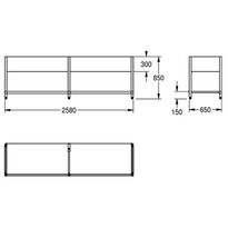 - Rozmery rámu: hĺbka 650 mm, výška 850 mm, šírka 2580 mm