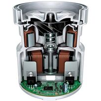 The Dyson Airblade V hair dryer is equipped with a Dyson digital motor. Work on it took seven years. It is one of the smallest integrated engines in the world with a power of 1600W. The Dyson motor can suck in up to 21 liters of air per second. The engine is highly economical and durable, it generates digital pulses with a frequency of 6,000 units per second, which can reach a speed of 88,000 units per minute. There are only three moving parts inside the device, which limits the replacement of worn out elements, such as slip rings or carbon brushes.