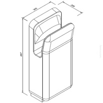 Motor kefy s menovitým výkonom 1900 W zaisťuje veľmi vysokú rýchlosť vzduchu 95 m/s, čo skracuje čas sušenia na 7-10 sekúnd. Antibakteriálny povlak eliminuje baktérie, čo je dôležité najmä na verejných miestach. Vstavaný panel podsvietenia umožňuje používateľom jednoducho používať zariadenie aj pri zlých svetelných podmienkach.