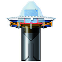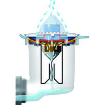 MB-ActiveTrap uses a vertically suspended membrane that allows urine to flow smoothly into the drain while automatically closing when the flow stops. This unique feature prevents the return of odors by creating a protective barrier between the sewage system and the sanitary room. Additionally, the siphon is equipped with a visual indicator that signals the need for replacement - the red contact surface under the transparent cover becomes visible when it is time to replace the cleaning stone or the siphon itself.