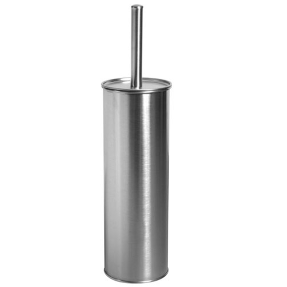 A free-standing toilet brush in the form of a tube intended for both public toilets and home bathrooms. The toilet brush housing is made of satin stainless steel. Universal, suitable for bathrooms with various finishes.