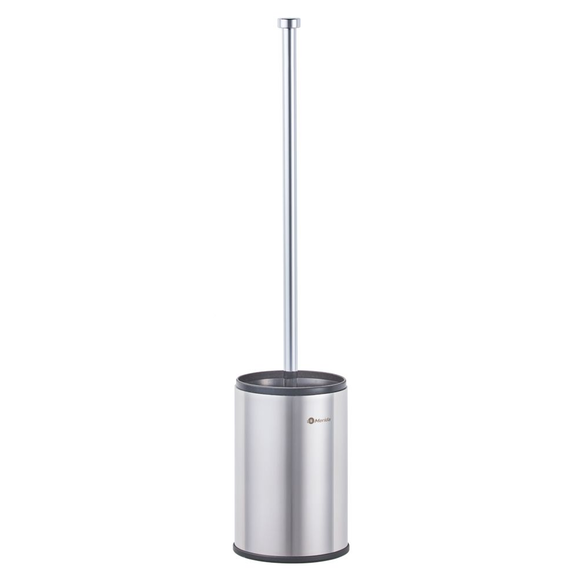 Standing toilet brush tube made of stainless steel with a polished surface. The removable handle base makes it easy to clean the device. The toilet brush has a replaceable tip.