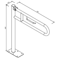 Poręcz stojąca uchylna dla niepełnosprawnych o długości 70 cm i wysokości 80 cm, wykonana ze stali nierdzewnej matowej, przeznaczona do montażu do posadzki. Ten uchwyt znakomicie sprawdza się w łazienkach i toaletach dla osób niepełnosprawnych. Uchwyt posiada atest Państwowego Zakładu Higieny.