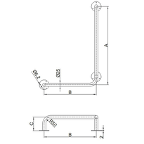 Winkelhandlauf für eine Behindertentoilette mit zwei Stützpunkten. Griffe mit Längen von 40 und 80 cm aus poliertem Edelstahl eignen sich sowohl für die Dusche als auch für das WC. Dieses Badezimmergeländer eignet sich perfekt für den Einsatz in Badezimmern und Toiletten für behinderte Menschen und ist, was wichtig ist, vom National Institute of Hygiene zertifiziert.