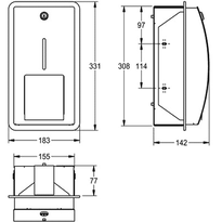 - Abmessungen: - Höhe: 331 mm, - Breite: 183 mm, - Tiefe: 142 mm