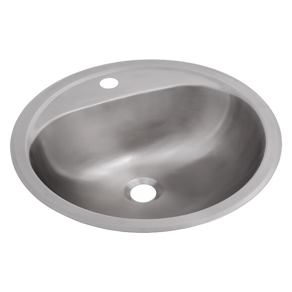 4. Round sink with a hole for a faucet, made of matte noble steel.