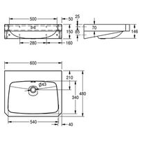 The Anima wall-mounted washbasin has a round basin with a diameter of 385 mm. The single washbasin includes a G 1 1/4B drain set with overflow and plug. The rear splash-proof wall protects against leaks and dirt. The hole for the amature is on the right side.