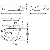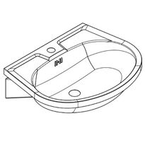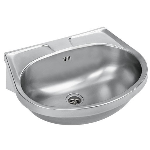 Single washbasin for wall mounting. Made of stainless steel, matt polished surface, material thickness 1 mm. The chamber was seamlessly welded into the countertop. Oval shape. Shelf for fittings, 90 mm deep. 35 mm fitting hole. Equipped with overflow holes.