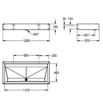 - Rozmery: (š × v × h): 1200 × 150 × 570 mm