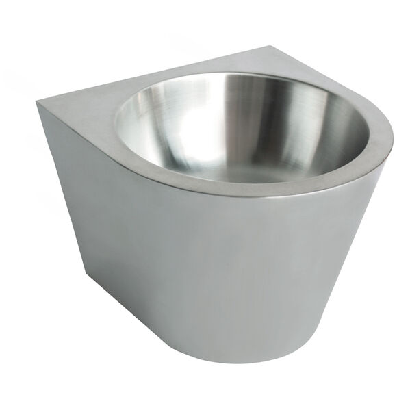 Lavabo de acero inoxidable con fijación a pared oculta. Este lavabo de acero está diseñado para su uso en baños de escuelas, juzgados, prisiones, hoteles y otros lugares públicos. Elegante y estéticamente fabricado en material duradero. Lavabo antivandálico para baños públicos.