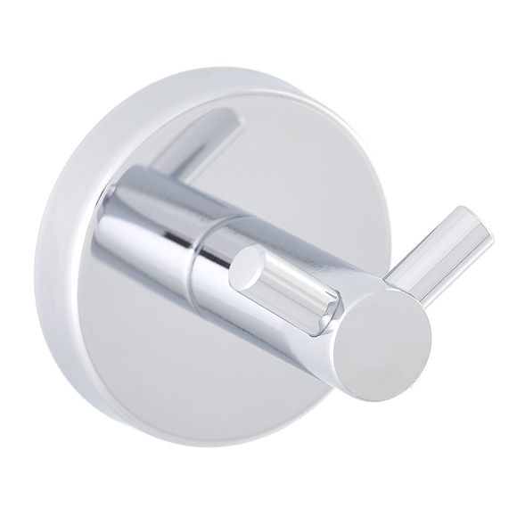 Kúpeľňový vešiak Merida s dvoma háčikmi na uteráky alebo oblečenie je vyrobený z pochrómovanej mosadze s leštenou povrchovou úpravou. Vešiak sa pripevňuje na stenu alebo dvere WC kabínky.