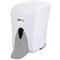 Zestaw: pojemnik na papier. podajnik ręczników i dozownik łokciowy mydła w płynie duży Faneco POP, białe tworzywo ABS