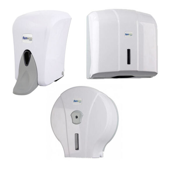 Kit: paper container, towel dispenser and elbow dispenser Faneco POP plastic white plastic